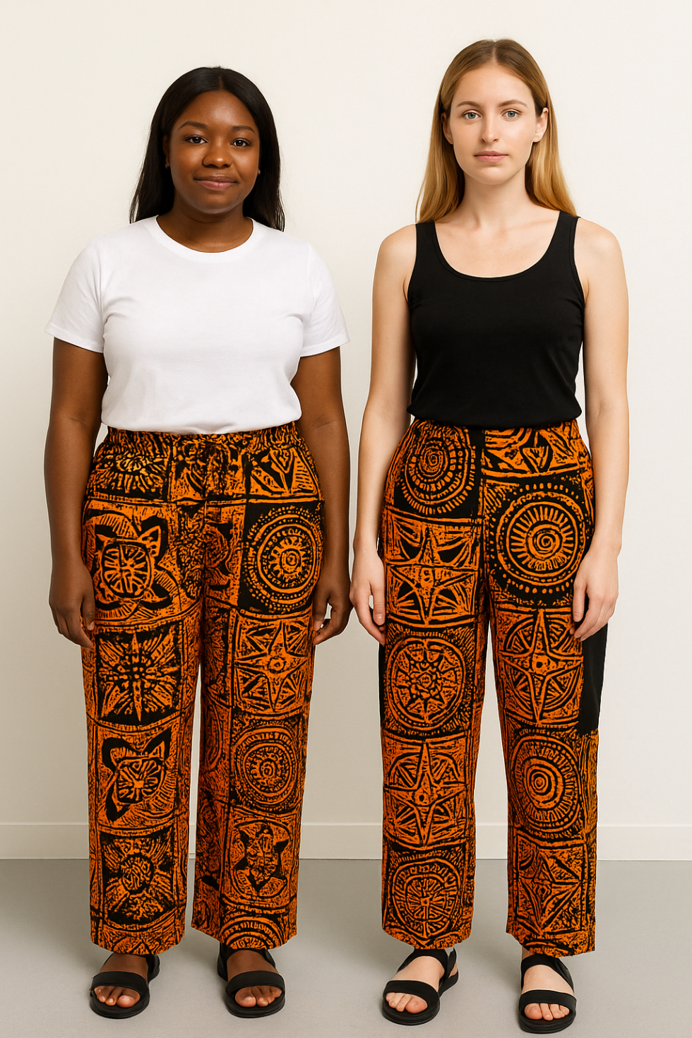 Step into cultural rhythm with our Amber Eclipse fabric Baggy Pants — a vivid tribute to heritage and bold self-expression. This design features ancient-inspired medallions and tribal symbols in a rich, glowing orange against a deep black base, evoking the striking contrast of a solar eclipse. Each square is a visual story, hand-drawn in a patchwork style that commands attention. Perfect for wide-leg pants, skirts, or coordinated sets, Amber Eclipse radiates warmth, strength, and timeless style. Whether you’re dressing for comfort or cultural celebration, this fabric speaks volumes without saying a word.