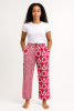 Turn heads with the bold energy of GeoWave Fusion — a statement fabric that plays with symmetry and rhythm. This eye-catching piece features a striking split design: one leg radiates optical movement with curved wave lines and circular accents, while the other commands attention with oversized geometric symbols in cracked ivory against rich raspberry red. Crafted for comfort and confidence, this piece is perfect for trendsetters who love structured patterns with a twist of artistic flair. Whether you’re lounging, traveling, or showing off your creative side, GeoWave Fusion brings visual balance to every step.